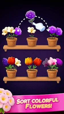 Vaš zadatak je jasan, ali intrigantan: rasporedite cvetove iste boje u odgovarajuće vaze, stvarajući savršene bukete. Svaki potez zahteva promišljanje, dok razvijate strategiju za rešavanje sve složenijih aranžmana. Počevši od nežnih, uvodnih nivoa, brzo ćete napredovati ka izazovima koji će testirati vašu logiku i sposobnost planiranja. Sa neprekidnim tokom svežih zagonetki i jedinstvenih cvetnih kombinacija, dosada je nepoznata reč u ovom cvetnom carstvu.